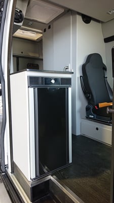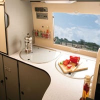 Der Kühlschrank (meist zwischen 70 und 90 L) bietet genug Platz für Ihren Reiseproviant. Töpfe, Pfannen, Besteck und Geschirr sind sicher in den, auf ihre Bedürfnisse zugeschnittenen, Schränken untergebracht. Damit auch während der Fahrt alles aufgeräumt bleibt, sind Besteckeinsätze integriert. Die soliden, leichten Klappen, Türen und Schubkästen werden von Sicherheitsschlössern gehalten, die auch bei Kurvenfahrt Sicherheit geben.