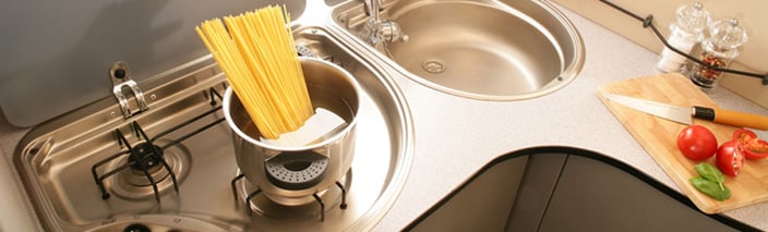 Je nach Länge besteht der Küche aus einer Kombination aus Herd und Waschbecken oder aus 2 Einzelgeräten.