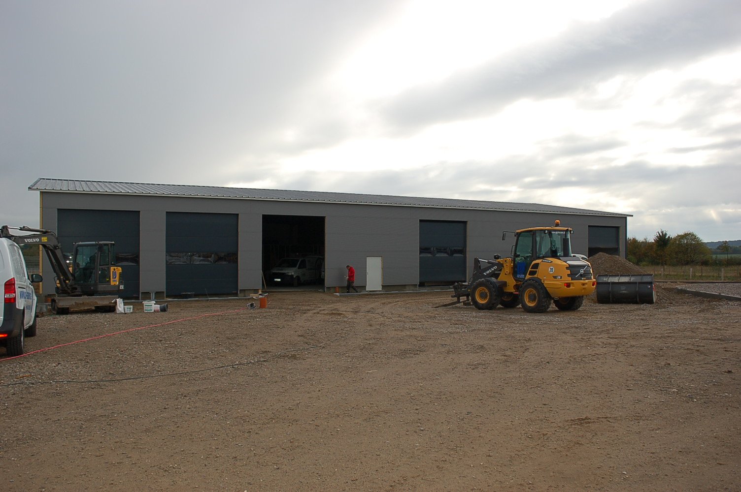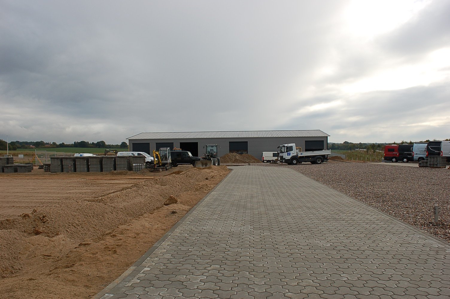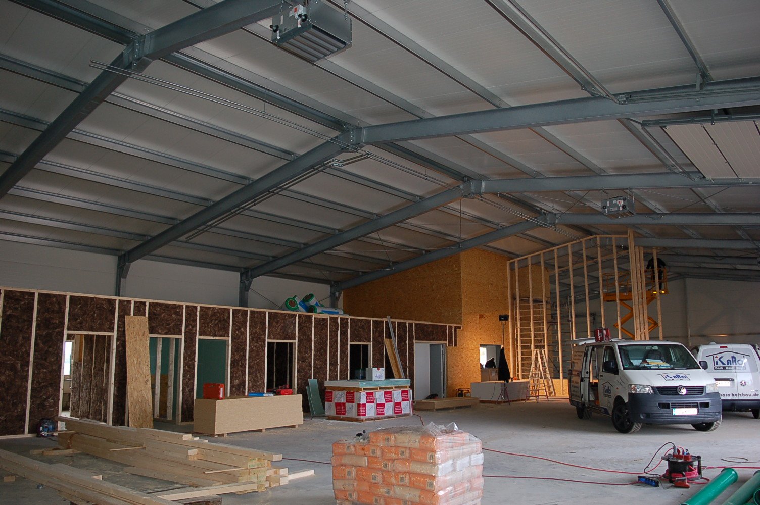 Die Halle steht, nun ist der Innenausbau an der Reihe. Die ersten Fahrzeuge aus unserem Wohnmobilverkauf wurden schon auf dem neuen Gelände platziert.